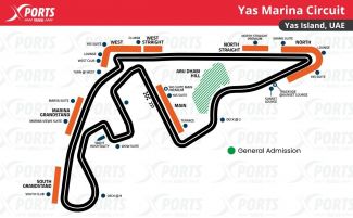 Yas Marina Circuit: Primer Gran Premio: 2009 / Longitud del circuito: 5.281 km / Distancia de carrera: 306.183 km / Número de vueltas: 55 / Curvas: 21 / Récord de vueltas: 1:26.103 / Max Verstappen (2021)