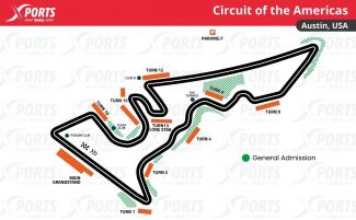 Circuit of the Americas: First Grand Prix: 2012 / Circuit length: 5,513 km / Race distance: 308,405 km / Number of turns: 56 / Curves: 20Lap record: 1:36.169 / Charles Leclerc (2019)