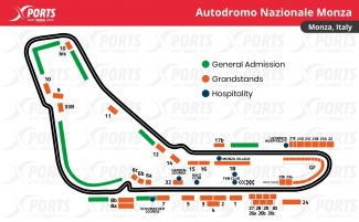 Autodromo Nazionale Monza: First Grand Prix: 1950 / Circuit length: 5,793 km / Race distance: 306.72 km / Number of turns: 53 / Curves: 11 / Lap record: 1:21.046 / Rubens Barrichello (2004)