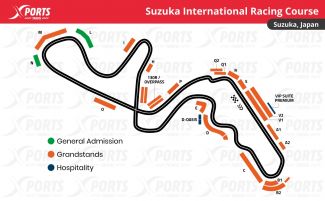 Suzuka Int. Racing Course: Primer Gran Premio: 1987 / Longitud del circuito: 5.807 km / Distancia de carrera: 307.471 km / Número de vueltas: 53 //Curvas: 18 / Récord de vueltas: 1:30,983 / Lewis Hamilton (2019)