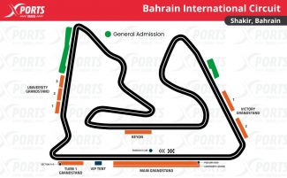 Bahrain International Circuit: First Grand Prix: 2004 / Circuit length: 5,412 km / Race distance: 308,238 km / Number of turns: 57 / Curves: 15Lap record: 1:31.447 / Pedro de la Rosa (2005)